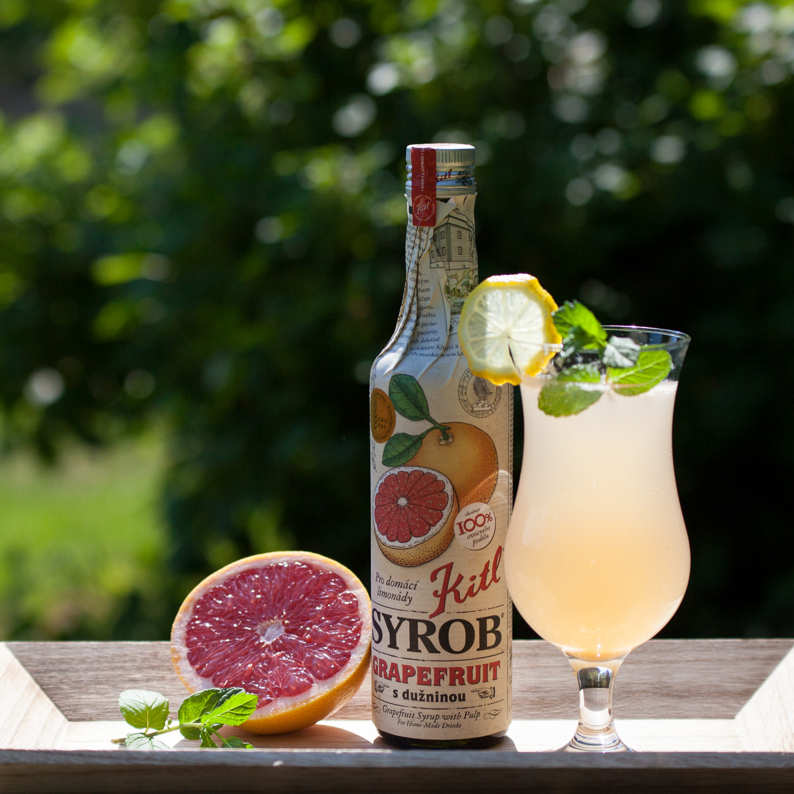Pagatavošana: Sagrieziet citronu, laimu un greipfrūtu lielākos gabaliņos un viegli saspaidiet tos glāzē. Pievienojiet ledu un Kitl greipfrūtu sīrupu (0,05 l sīrupa pietiek 0,5 l limonādes).