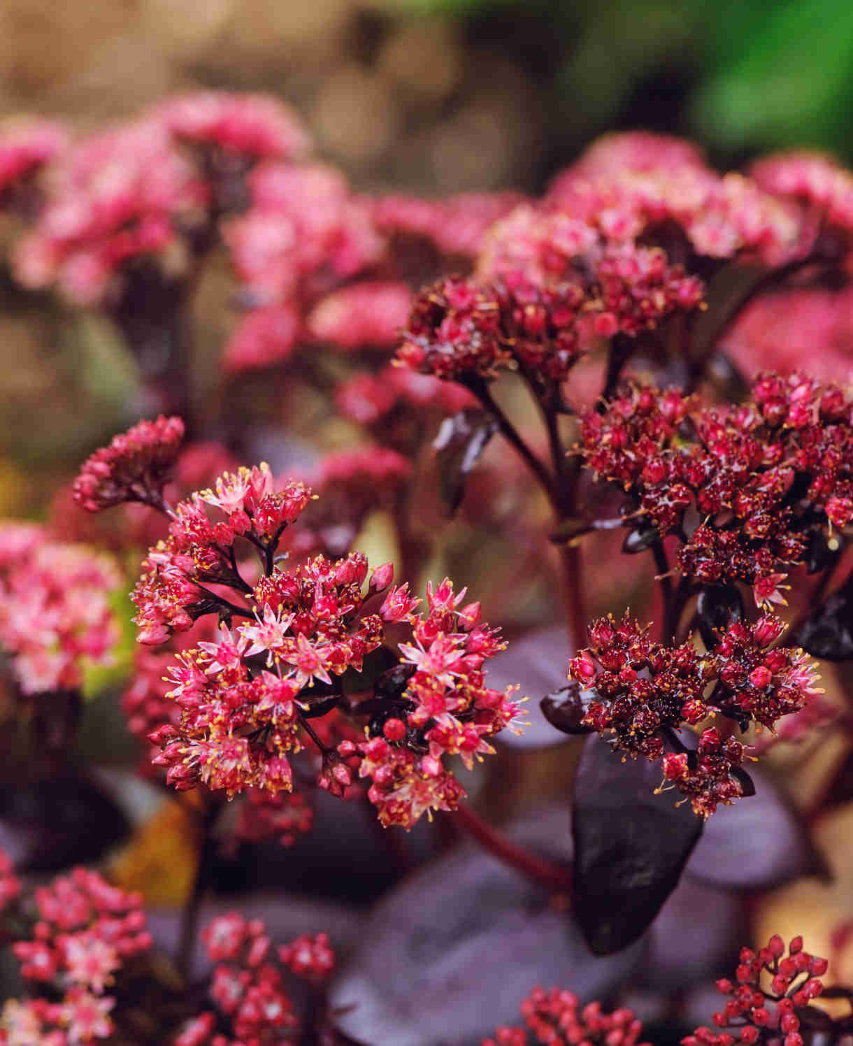 Kompakts un kupls augs ar melni violetām lapām. Rozā ziedu puduri. Zied no augusta līdz oktobrim. Auga augstums 40 – 45 cm. Izturīgs augs. Dod priekšroku augšanai saulainā un sausākā vietā.