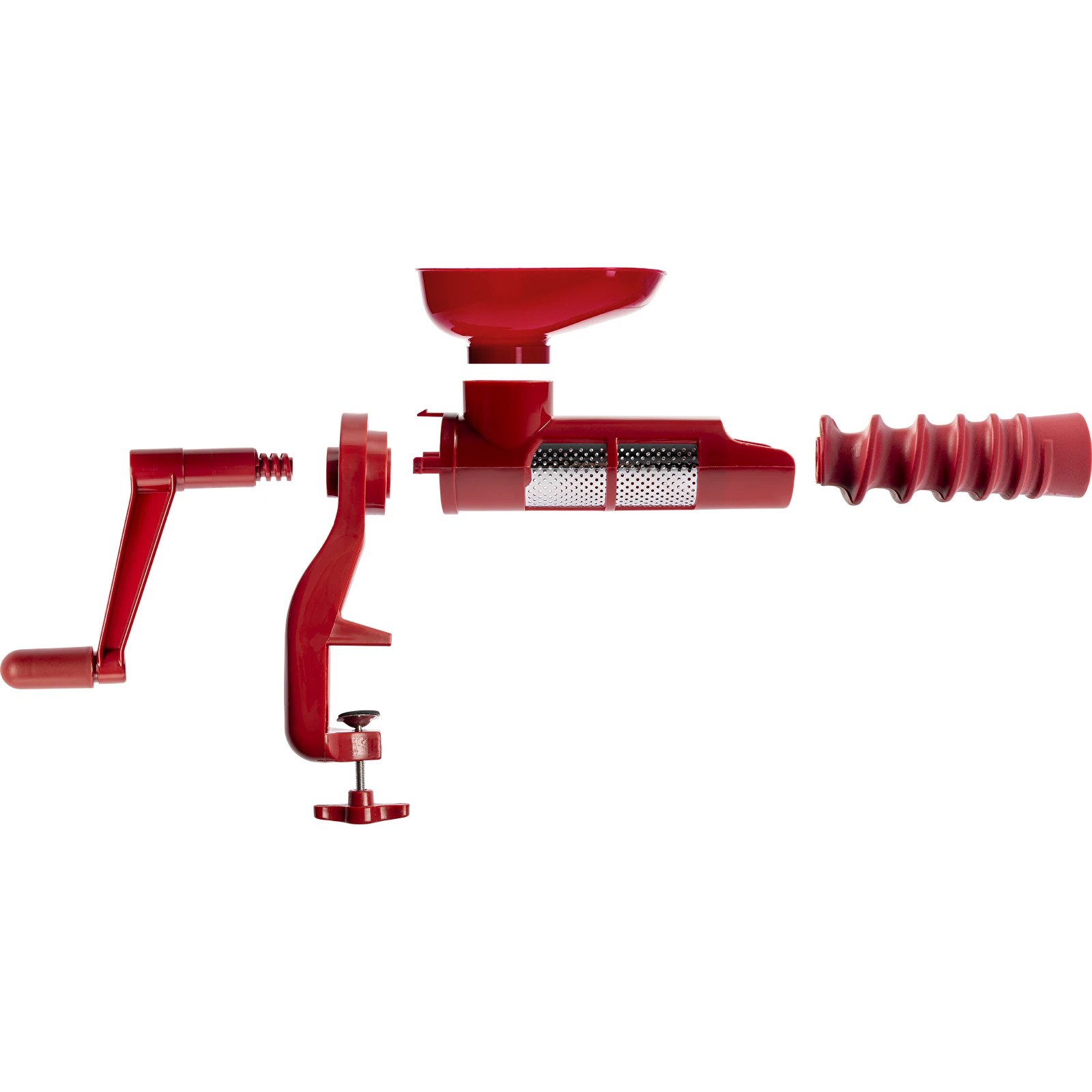 Rokas dzirnaviņas tomātu biezeņa pagatavošanai. Dzirnavām ir nerūsējošā tērauda siets un griešanas asmens. Mašīnā var izmantot nemizotus tomātus, kas ievērojami ietaupa laiku. Izmēri: 34 x 14 x 29 cm. Dzirnavas ir piestiprināmas pie darba virsmas ar skrūvspīlēm. Svars 0,49 kg