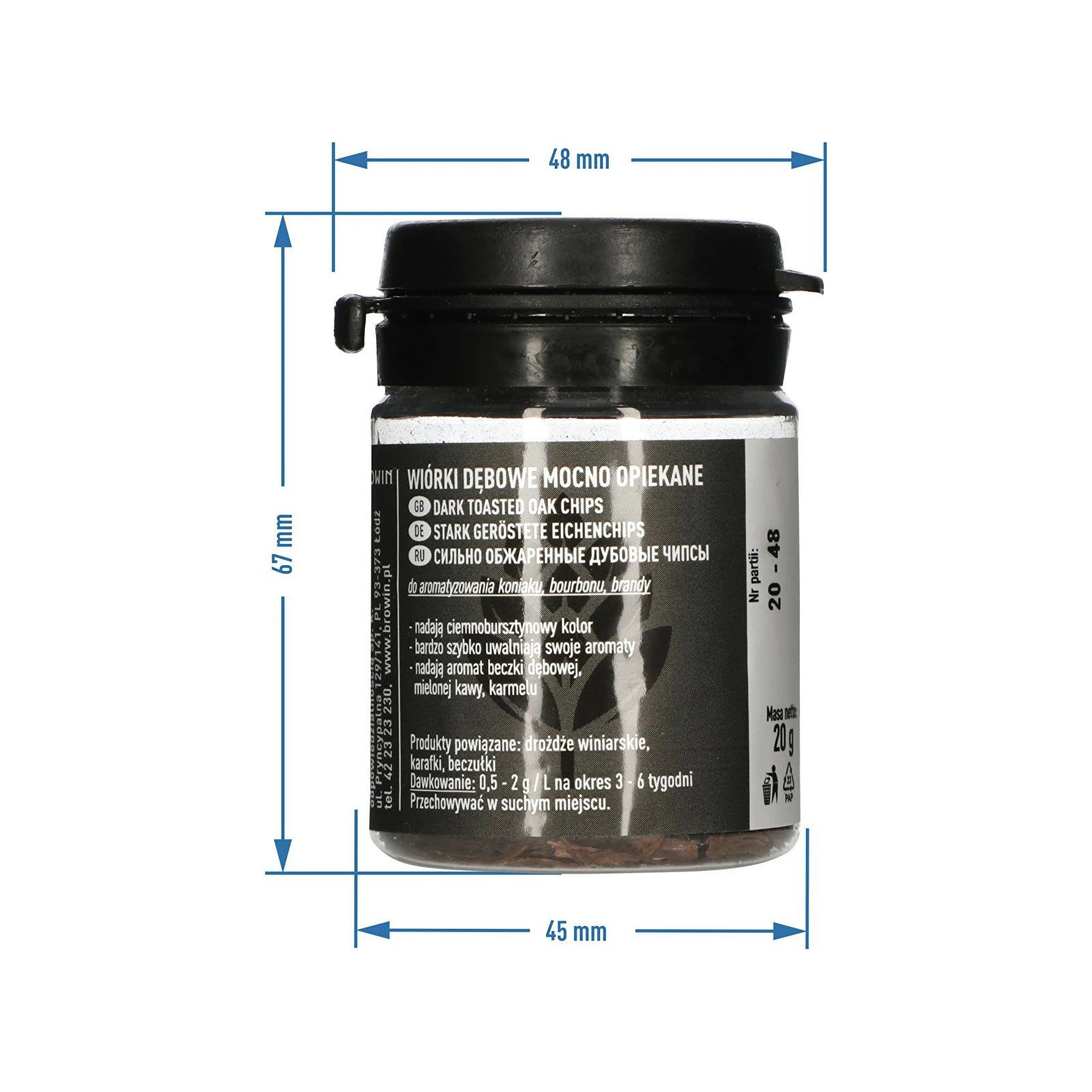 Grauzdēta franču ozola miza. Ozola skaidas var pievienot fermentācijas laikā, tas dod spēcīgāku ozola garšu nekā tad, ja vīns būtu glabāts ozolkoka mucā. Deva: 2-5 g uz litru vīna. Iepakojumā 20 grami produkta.